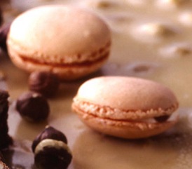一款橙味的精致馬卡龍。