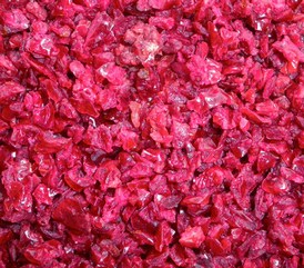進(jìn)口蔓越莓在工廠分選后進(jìn)行切丁??梢员挥糜诤姹?,冷飲,乳制品,保健品等行業(yè)。